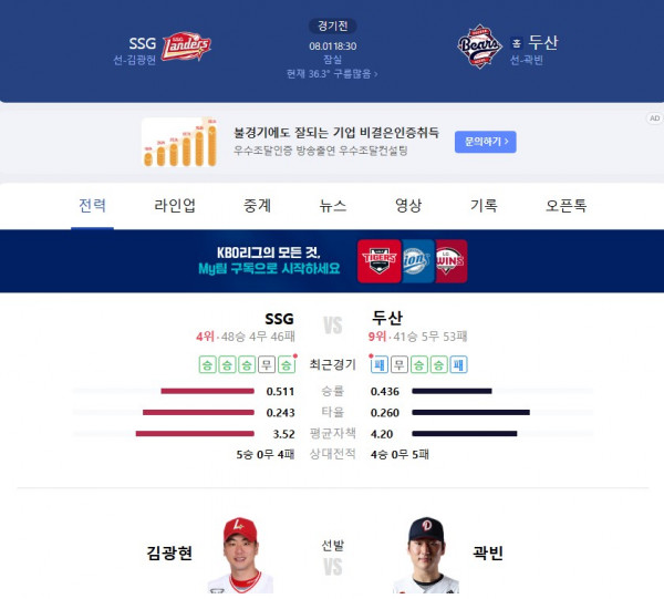 의문의 투수전이 기대되는 경기입니다.