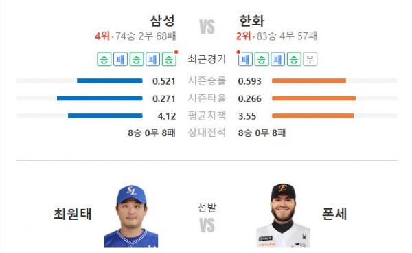 결국 폰세를 쓰네요. LG와의 한국시리즈는 어느팀이 가게될까요